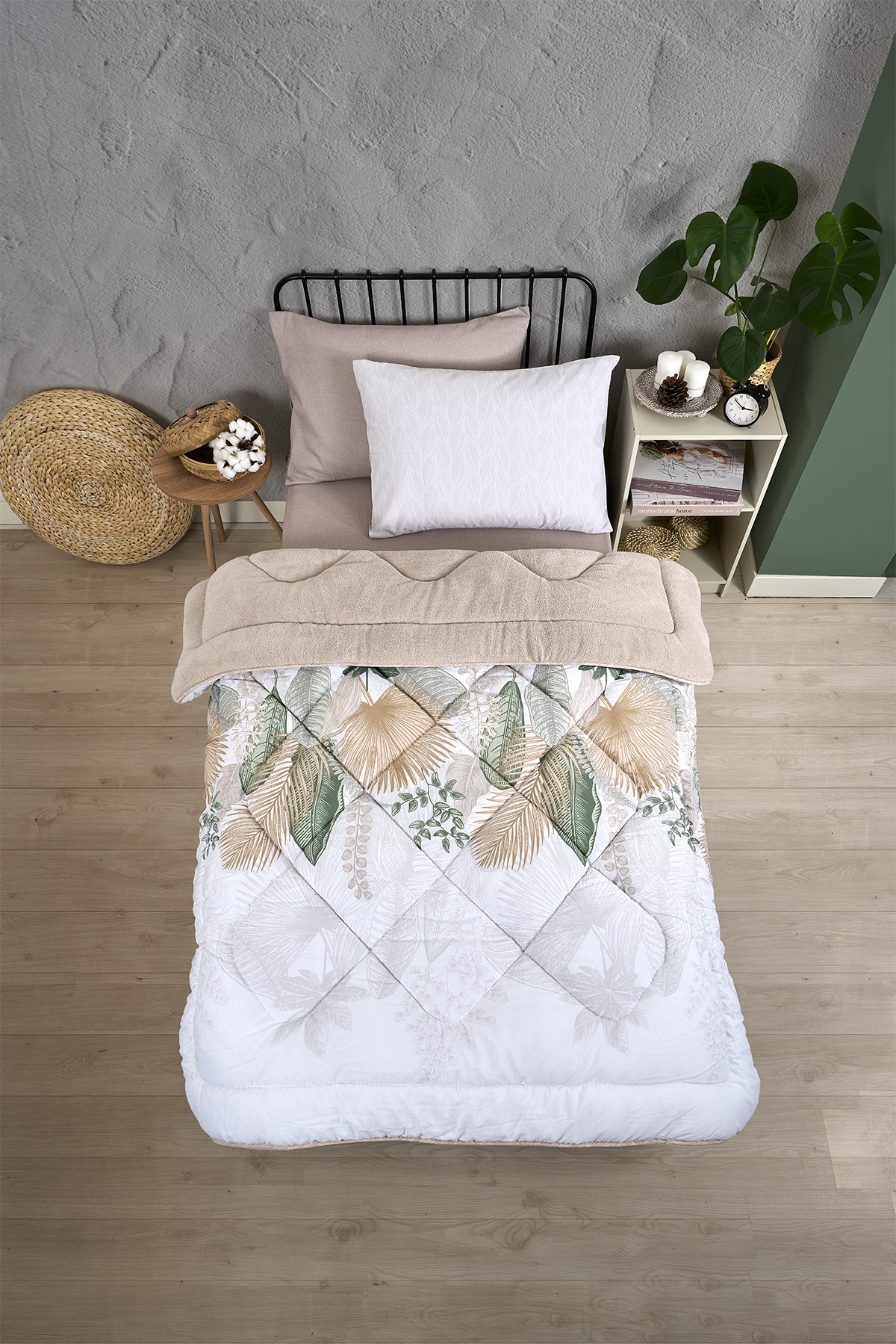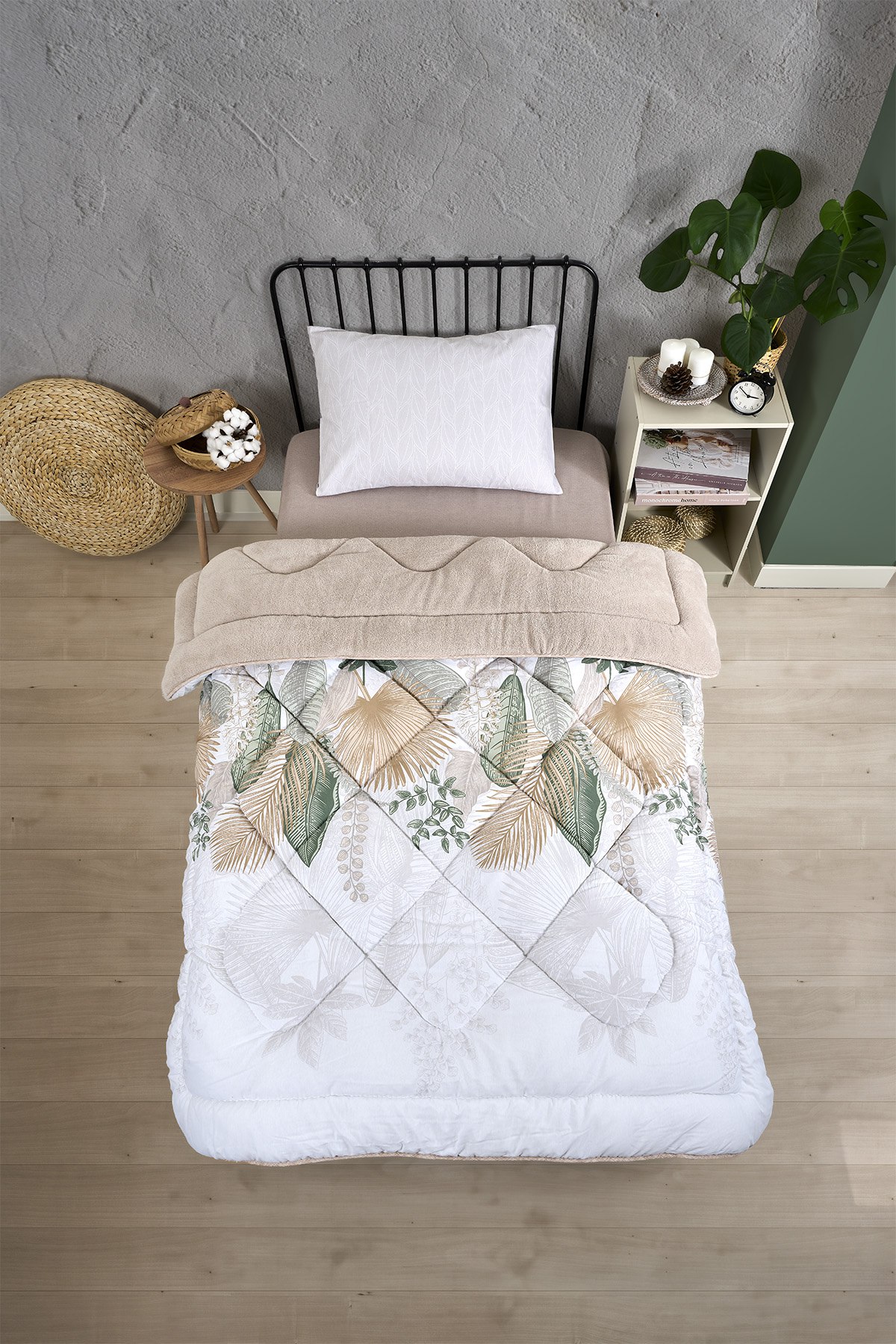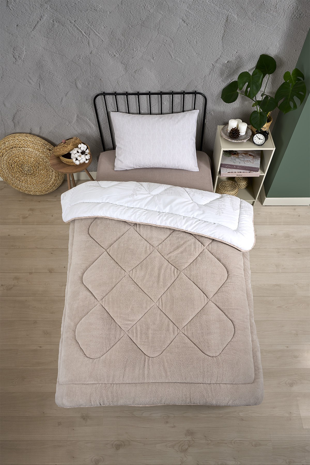 Tek Kişilik Çift Taraflı Lüx Welsoft Elit Yorgan Yumuşak Polar Yorgan ve Yastık Kılıfı Alena Bej