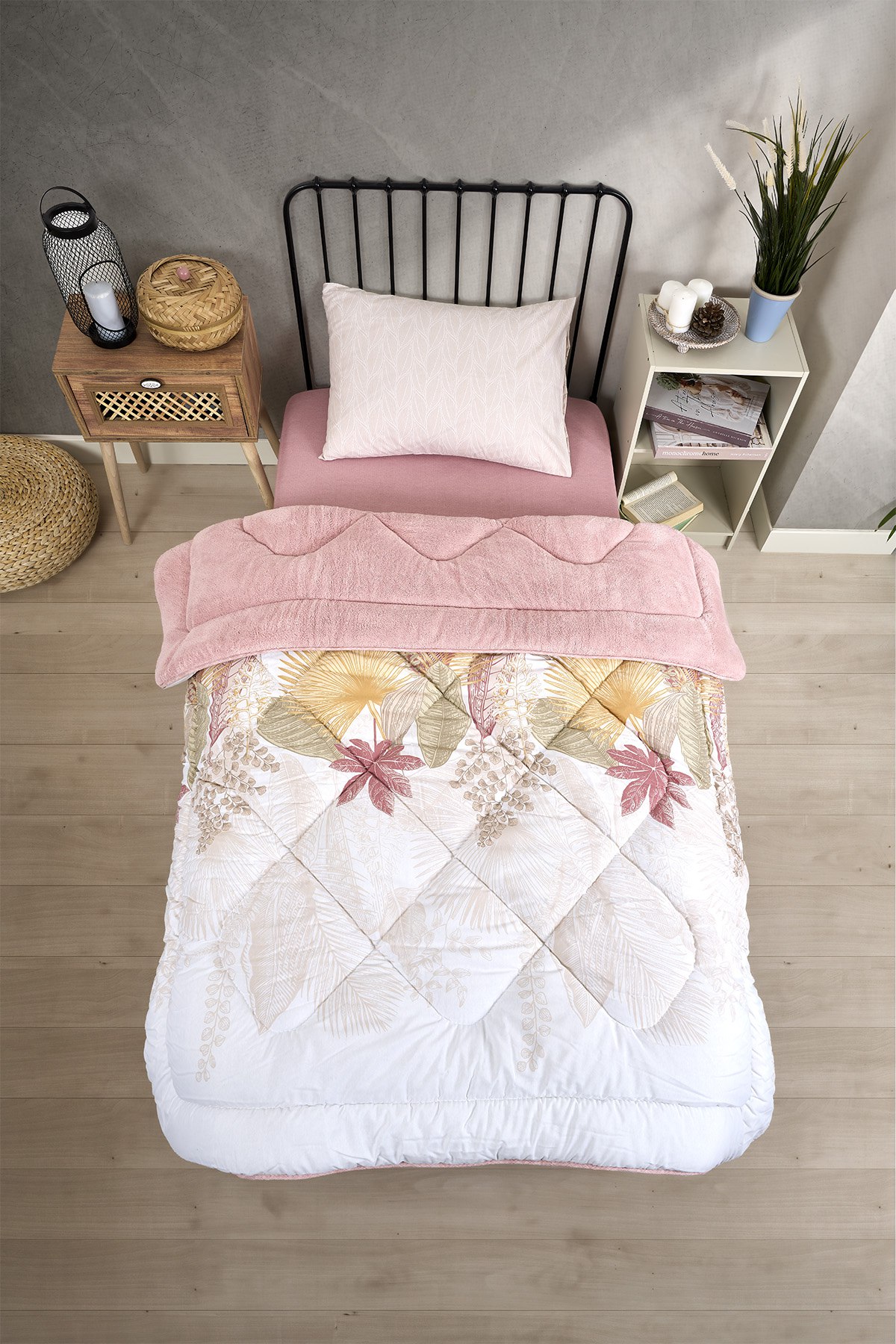 Tek Kişilik Çift Taraflı Lüx Welsoft Elit Yorgan ve Yastık Kılıfı Alena Pudra