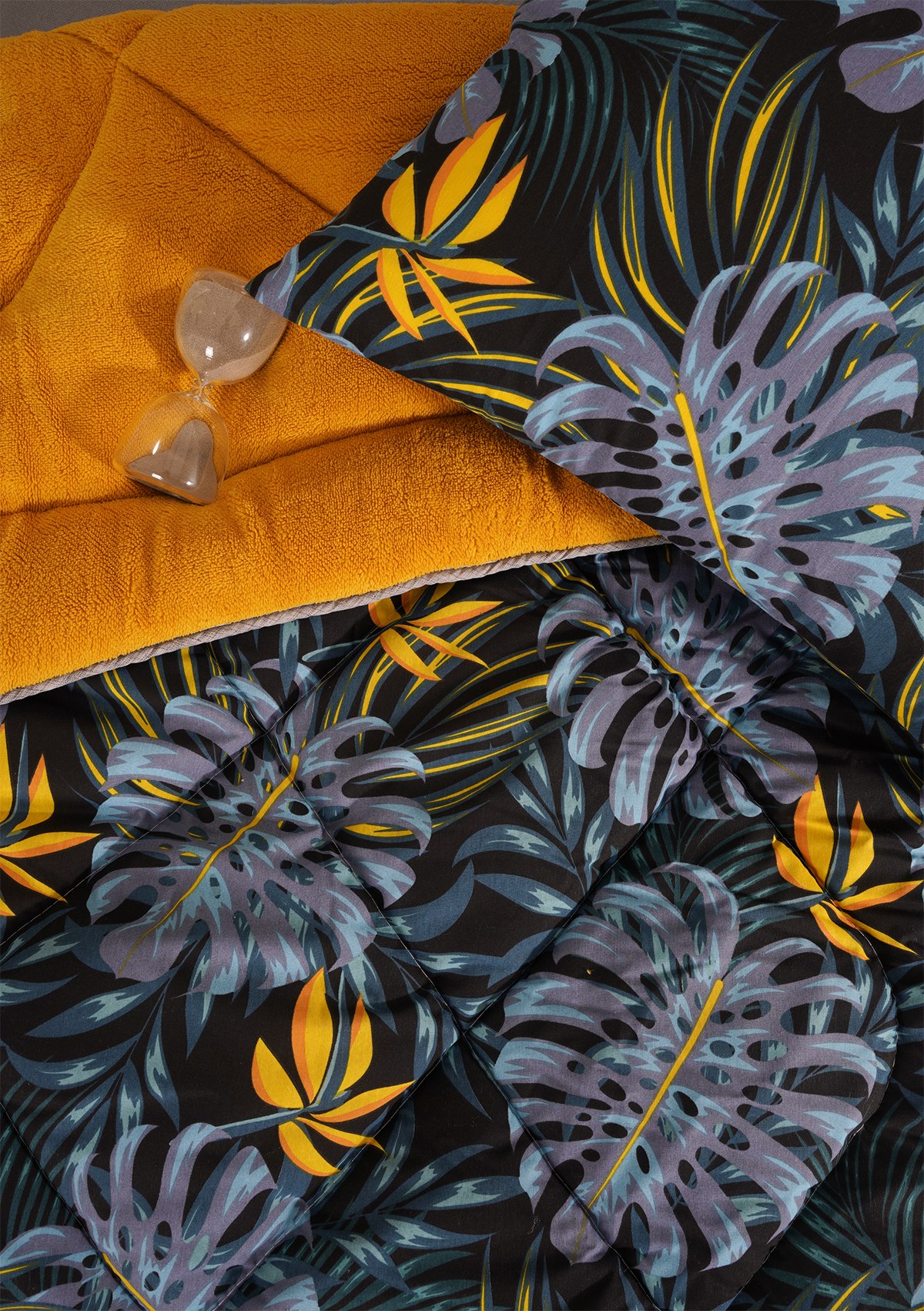 Tek kişilik boyda ve çift taraflı bir tasarıma sahip olan Arina yorgan, iki farklı renk ve doku seçeneği sunar. Bir tarafı hardal rengiyle kucaklayıcı bir sıcaklık sağlarken, diğer tarafı ise sade bir görünüm sunarak odanıza estetik bir hava katmaktadır. Böylece yorganınızı ruh halinize veya dekorasyonunuza göre kolayca değiştirebilirsiniz.