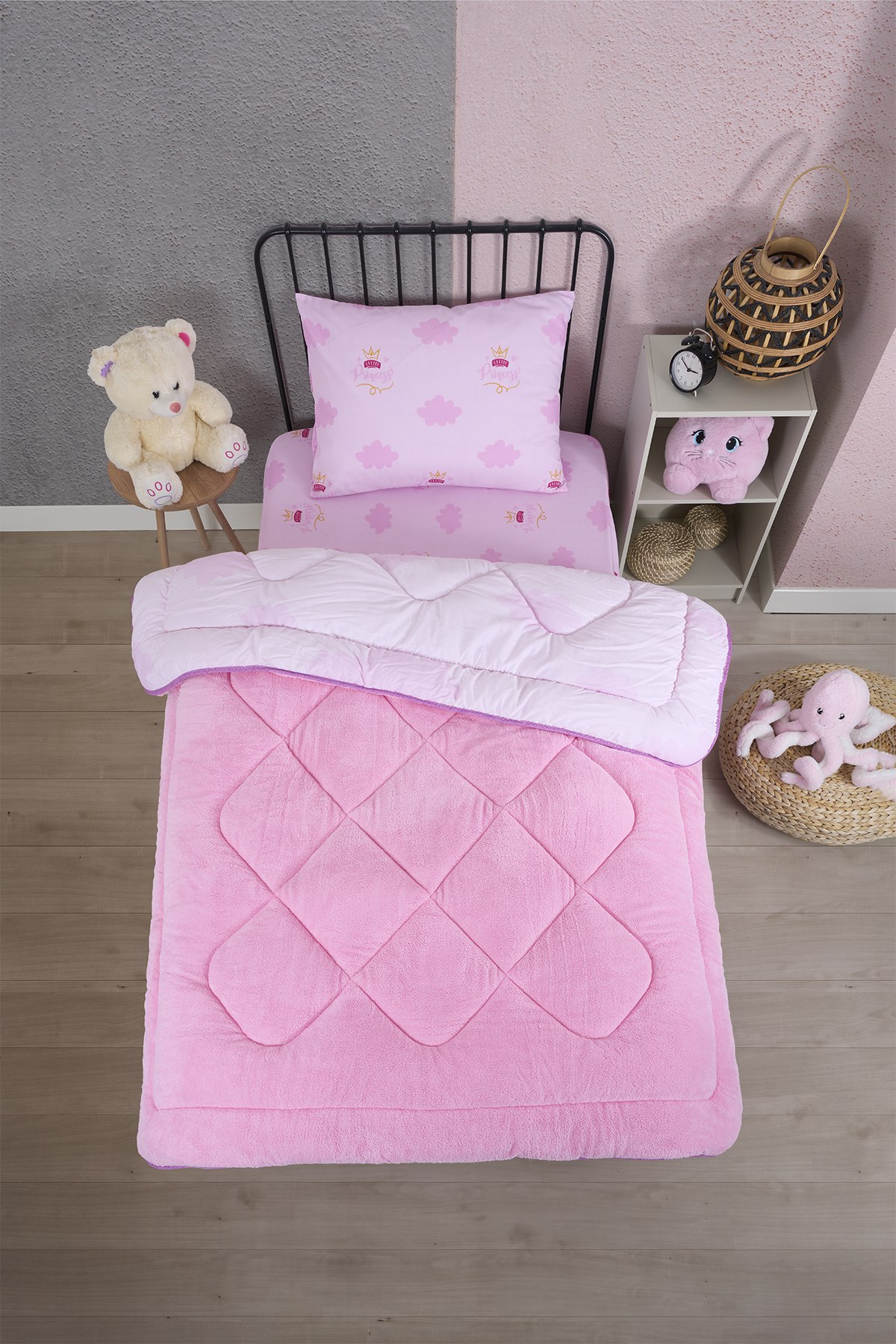 Tek Kişilik Çift Taraflı Lüx Welsoft Elit Yorgan Yumuşak Polar Yorgan ve Yastık Kılıfı Prenses Pudra