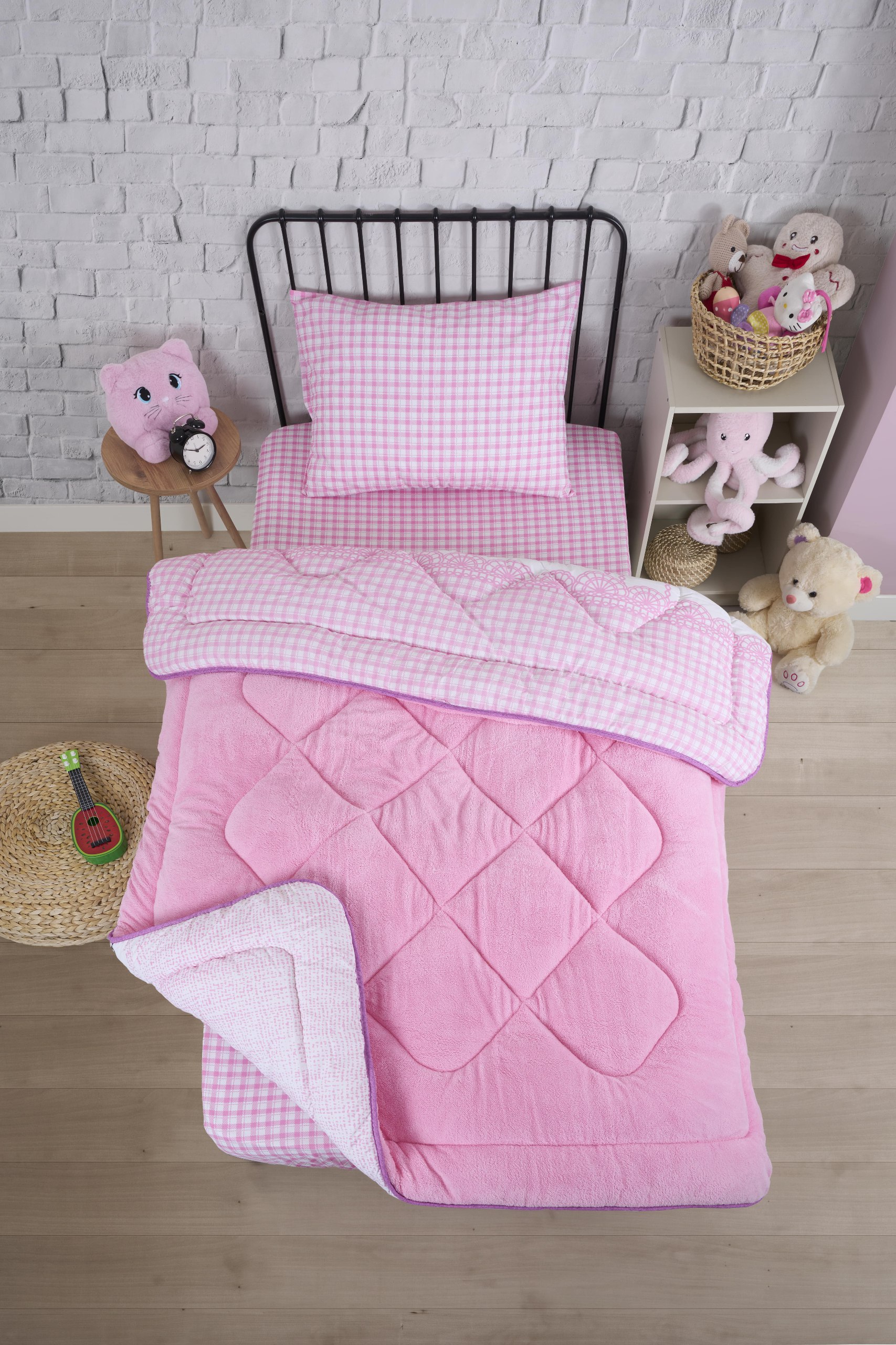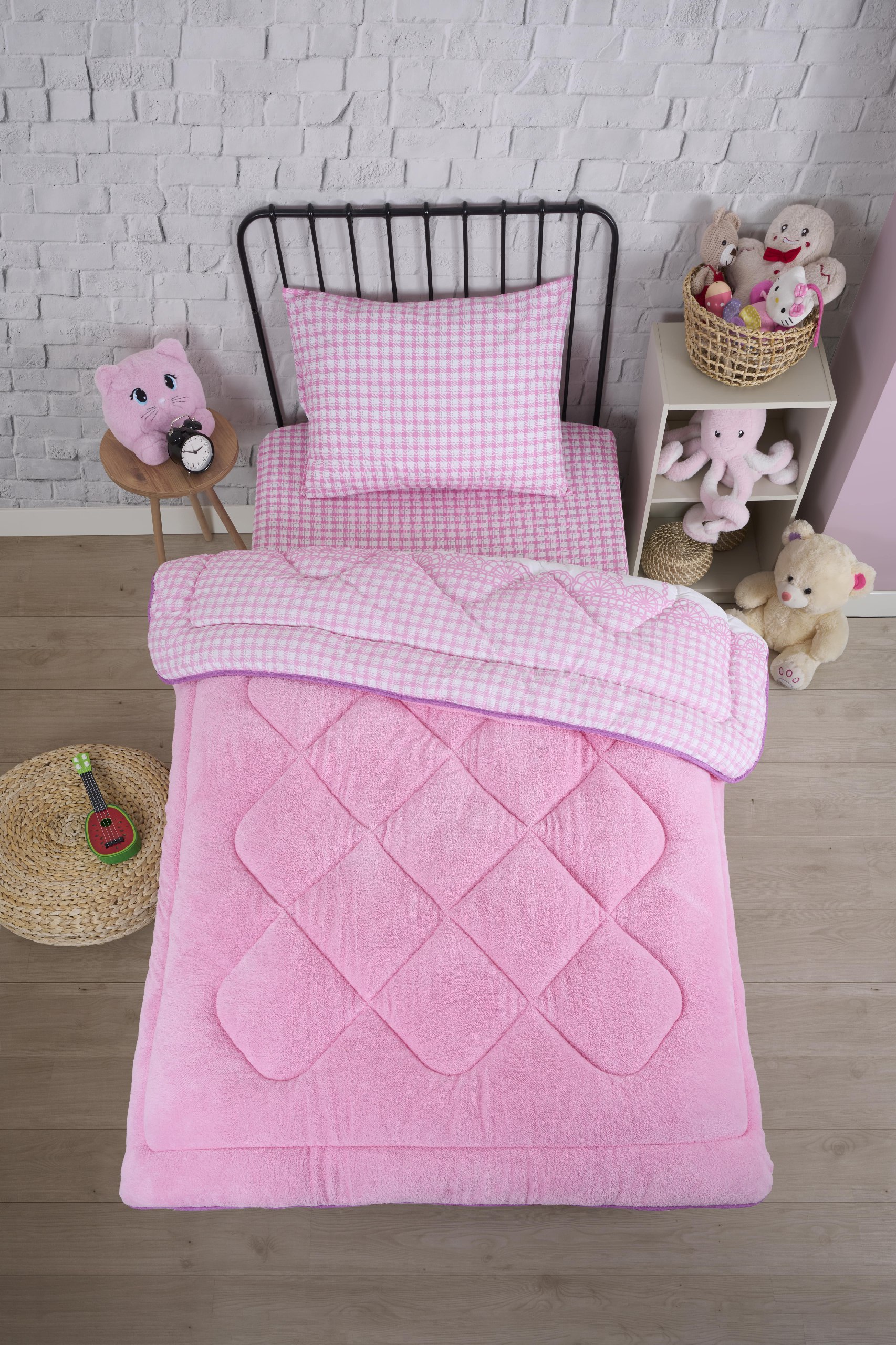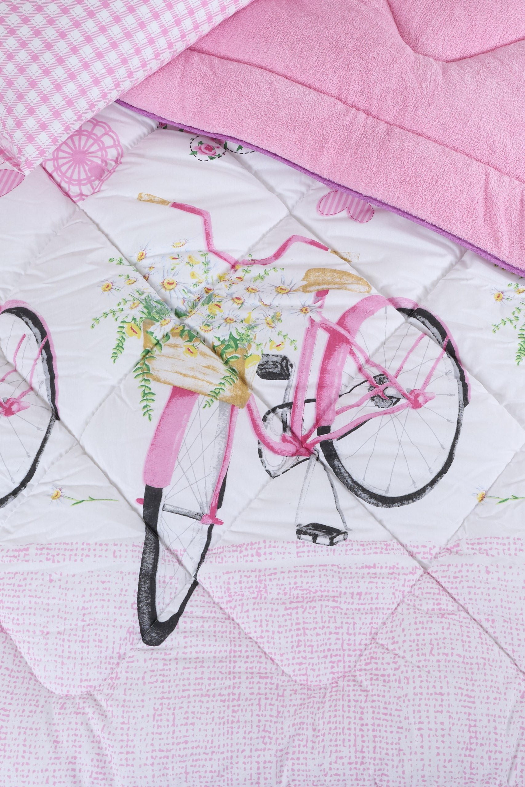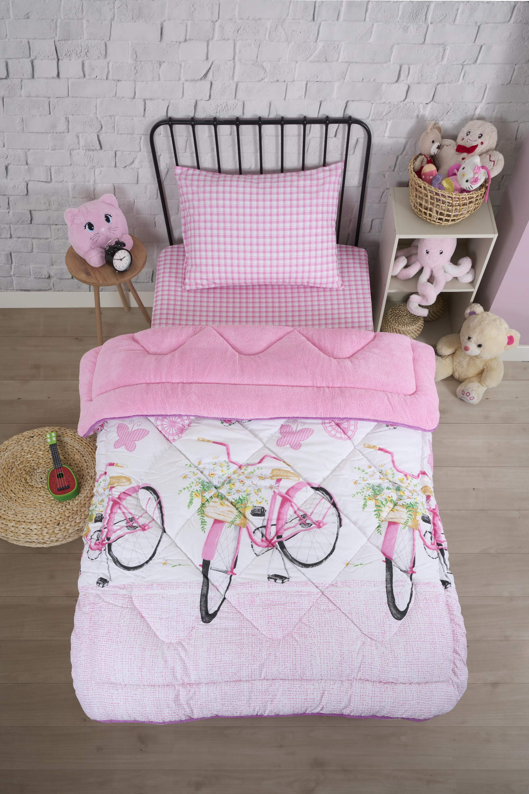 Tek Kişilik Çift Taraflı Lüx Welsoft Elit Yorgan Yumuşak Polar Yorgan ve Yastık Kılıfı - Pudra Bisiklet