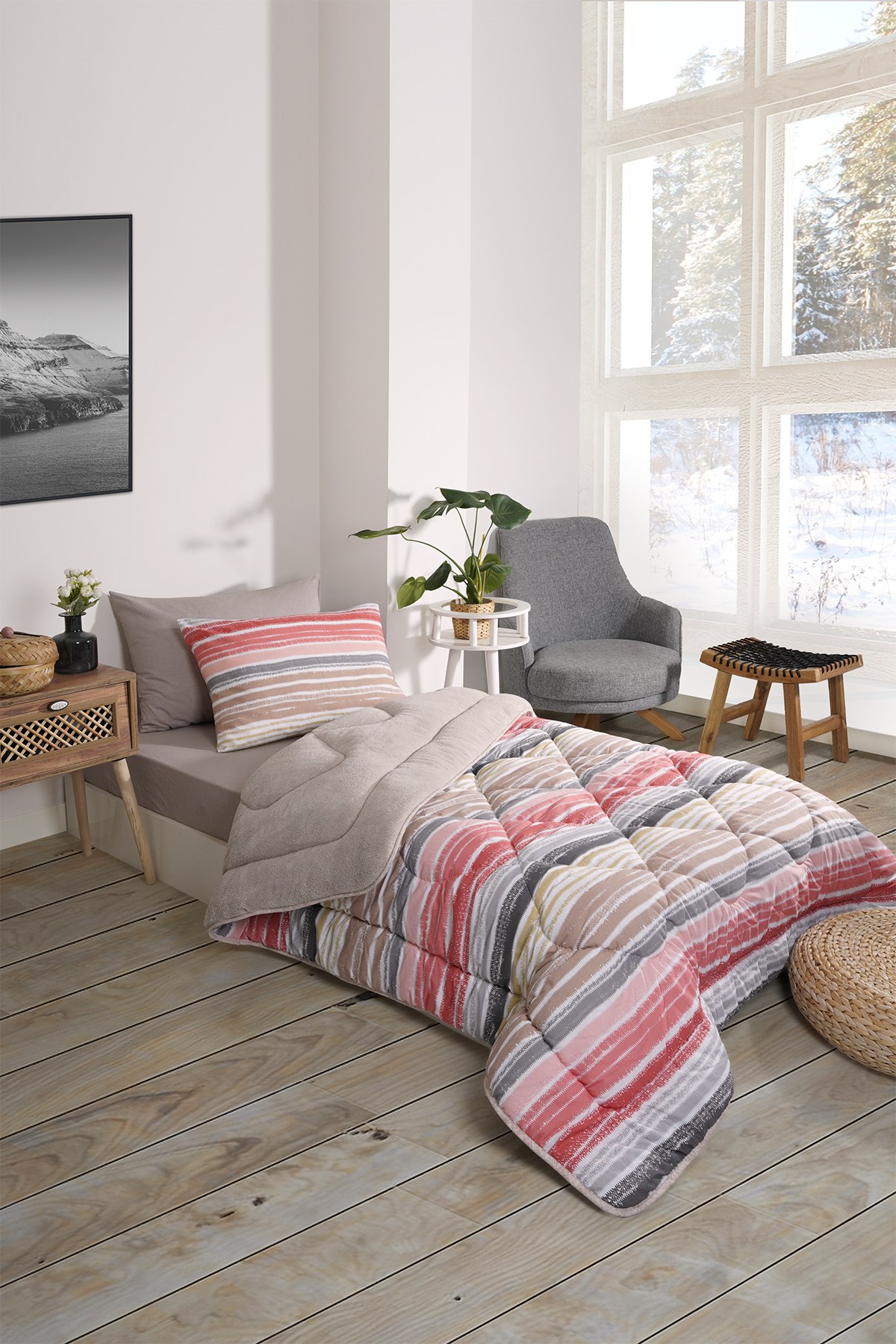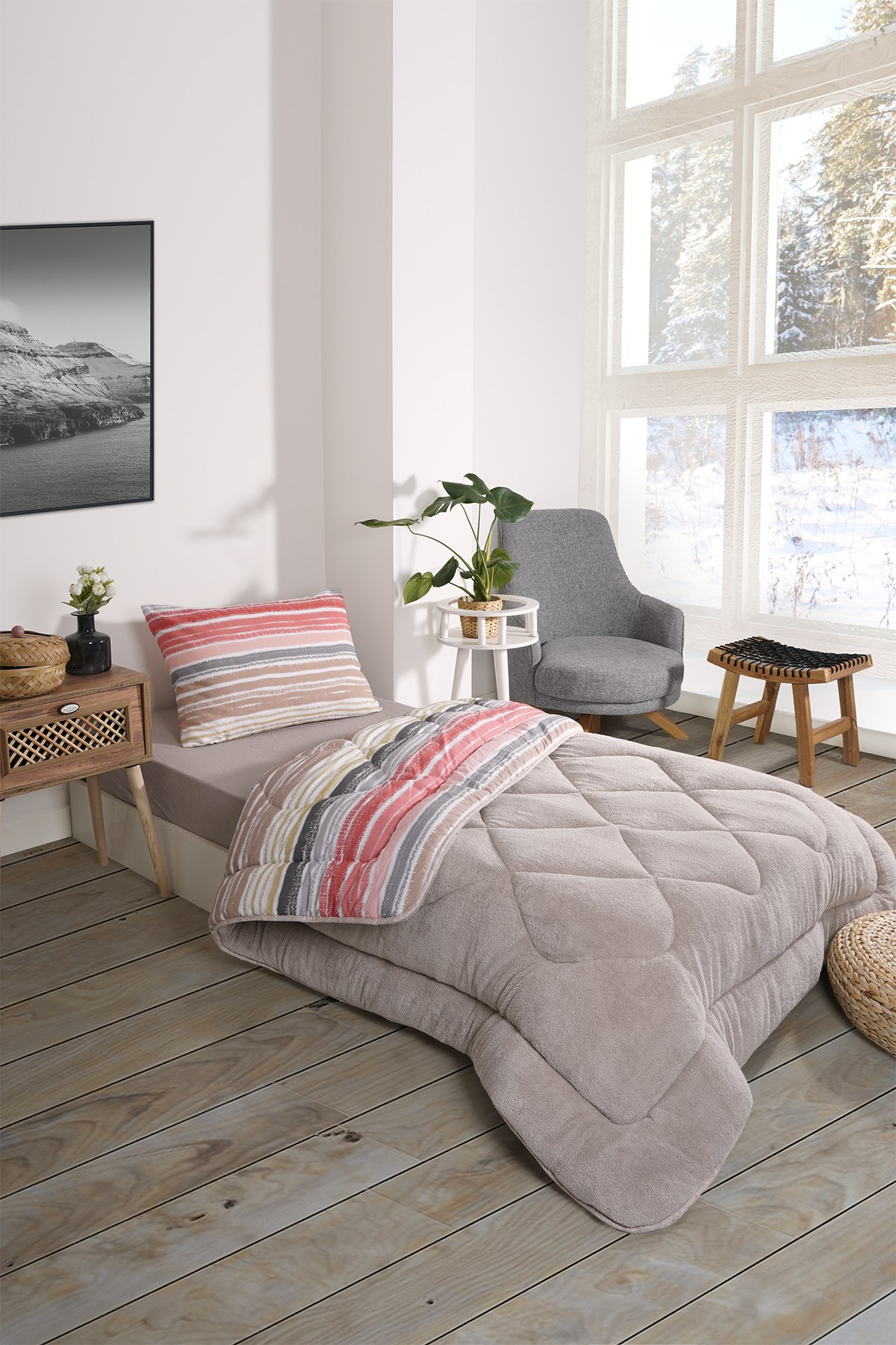 Tek Kişilik Çift Taraflı Lüx Welsoft Elit Yorgan Yumuşak Polar Yorgan ve Yastık Kılıfı - Tasel Bej