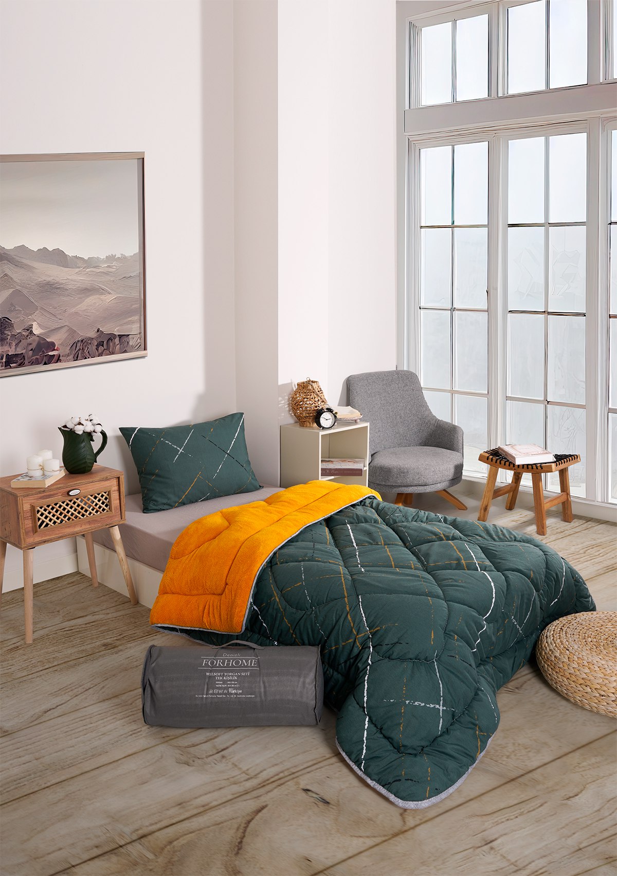 Bu yorgan, sadece yatak odasında değil; oturma odası, misafir odası gibi farklı alanlarda da kullanılabilir. Soğuk kış akşamlarında televizyon izlerken üzerinize alabileceğiniz yumuşak bir örtü olarak da işlev görür. Aynı zamanda pikniklerde ya da açık hava etkinliklerinde sıcak bir yuva oluşturmak için de idealdir.