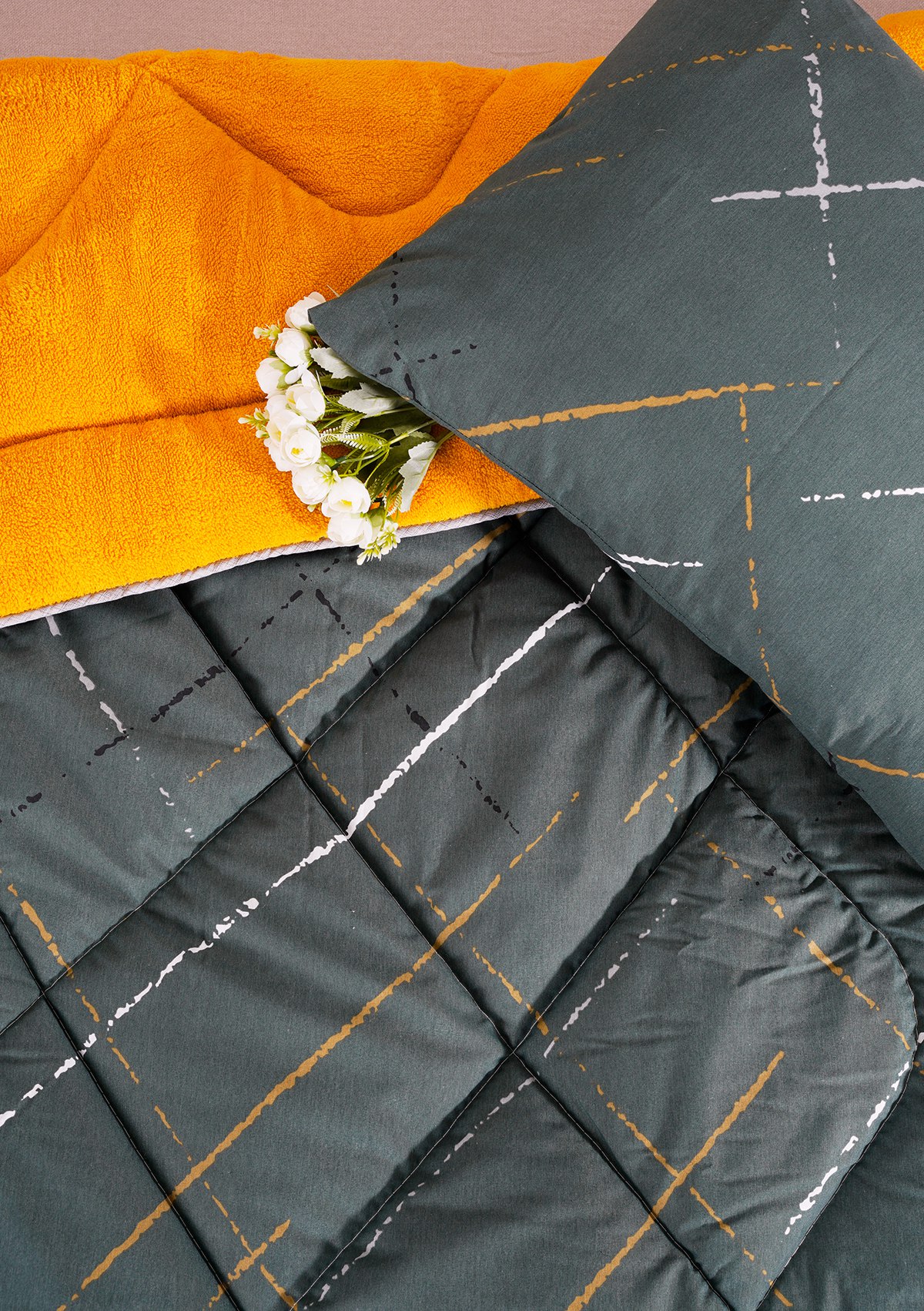 Tek Kişilik Çift Taraflı Lüx Welsoft Elit Yorgan Yumuşak Polar Yorgan ve Yastık Kılıfı Yansıma Hardal