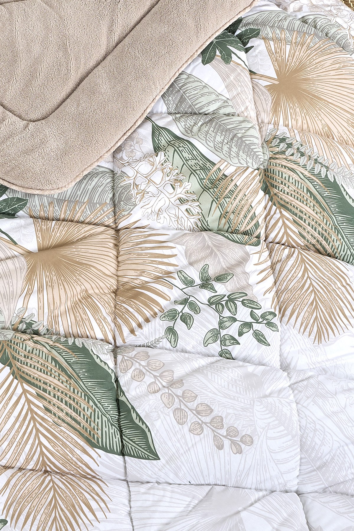 Bu uyku seti, sadece fonksiyonel olmanın ötesinde bir estetik anlayışa da sahiptir. Bej rengi, hem sade hem de zarif bir görünüm sunarak odanızı daha ferah ve davetkar kılar. Pofuduk polar yorgan, sizi sararak sarmalayarak konforlu bir uyku ortamı oluşturur. Uykusuz geçen gecelerin ardından, sabahları dinç ve zinde uyanmanızı sağlar.