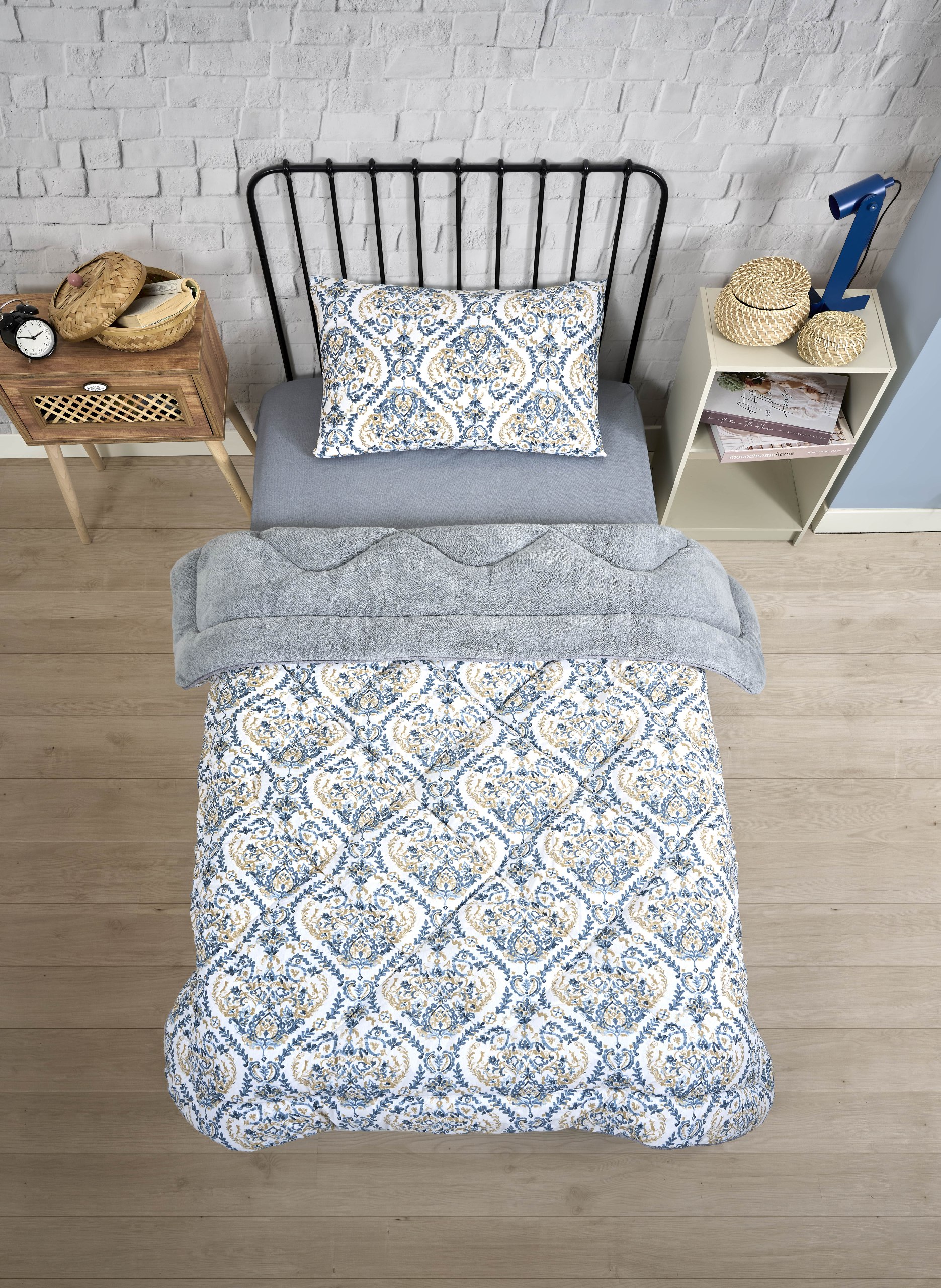 • Çift Taraflı Tasarım: Modern ve şık görünümüyle hem gri tonlarında hem de zıt renkteki desenleriyle iki farklı stil sunar. İsterseniz uyku alanınıza farklı bir atmosfer katabilirsiniz.